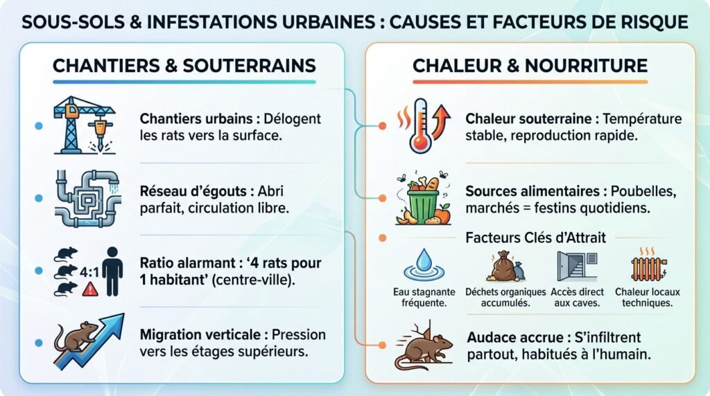 La proximité des humains n’effraie plus ces animaux. Les rats s’adaptent aux bruits urbains permanents. Ils s’infiltrent partout avec une audace qui surprend les plus vigilants.